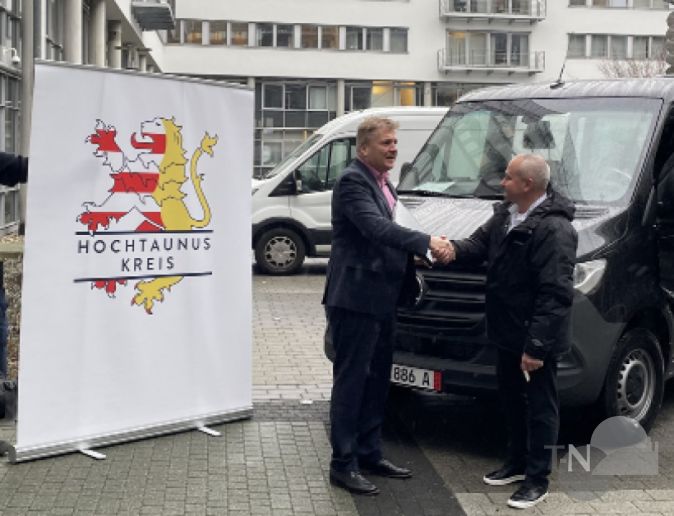 Hochtaunus (how). Bereits im März 2023 hat der Verein Ukrainehilfe Taunus, der kurz nach dem Beginn des russischen Angriffskrieges auf die Ukraine auf Initiative von Landrat Ulrich Krebs gegründet wurde, und das Deutsche Rote Kreuz (DRK) zwei Rettungswagen an die ukrainische Partnerstadt des Kreises, Zhovti Vody, gespendet. Nun wird der Fuhrpark der Stadt noch um einen Kleinbus erweitert, der zur Beförderung von Menschen mit Beeinträchtigungen geeignet ist. Heute übergab Landrat Ulrich Krebs den Wagen an den Bürgermeister von Zhovti Vody, Dmytro Khanis, der zurzeit den Hochtaunuskreis besucht.