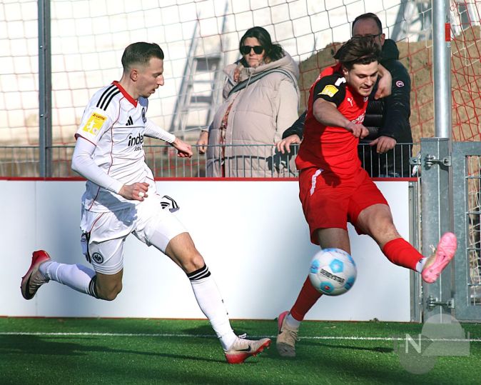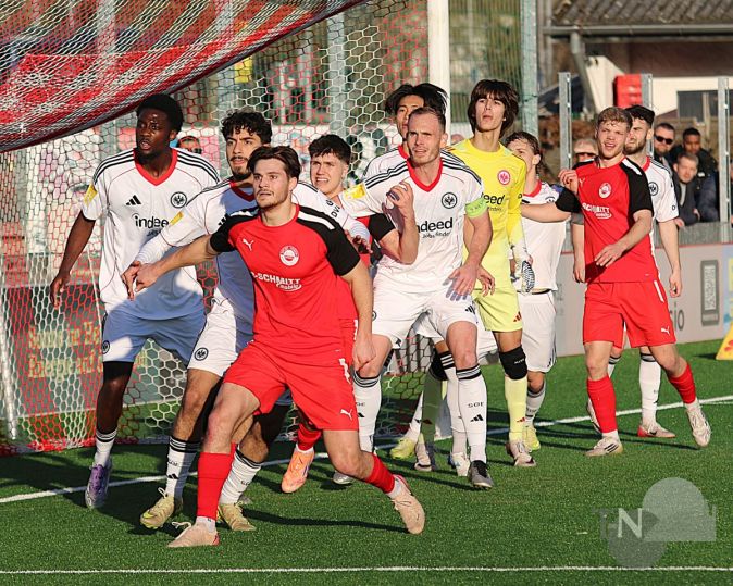 Die Eintracht kam mit Volldampf aus den Startlöchern, Walldorf hatte den vermeintlich schwersten Gegner gleich zum Rückrundenauftakt erwischt, ließ sich aber vom Tempo der Gäste vorerst nicht beeindrucken, im Gegenteil: Ein strammer Pass nach außen, Sexauer setzte sich gegen Ochojski durch, scharfe Hereingabe vor das Tor – 1:0 durch Zhakishev (16.)!