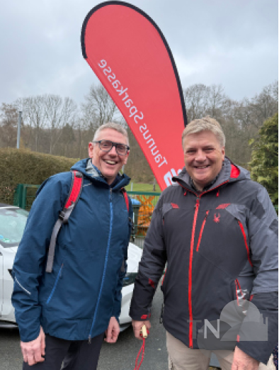 Taunus Sparkassen-Vorstand Markus Franz zeigte sich erfreut über die großes Resonanz: „Alle Jahre wieder starten wir gemeinsam in die Wandersaison“, sagte er zur Begrüßung. „Ich bin begeistert über den großen Zuspruch. Durch die Wanderungen lernt man den Taunus kennen.“ Und mit einem Augenzwinkern fügte er hinzu: „Es gibt kein schlechtes Wetter, nur schlechte Kleidung.“ Das Sparkassen-Team versorgte die Wanderer mit roten Äpfeln und Power-Riegeln und als kurz vor dem Start etwas Regen einsetzte, gab es sogar rote Regencapes und Schirme. Nach einigen organisatorischen Hinweisen gab Maja Garlich, stellvertretende Geschäftsführerin des Naturparks, den Startschuss für die Wanderung.