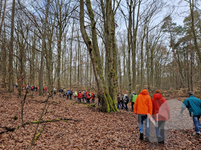 Begleitet wurde die Tour von drei zertifizierten Naturführern, die unterwegs spannende Einblicke in Wald, Landschaft und regionale Geschichte gaben. Die Route führte zunächst durch die Hardt, einen bewaldeten Höhenzug – der Begriff „Hardt“ stammt aus dem Germanischen und bedeutet ursprünglich schlicht „Wald“. Hier mussten die Wanderer auch einige Höhenmeter zurücklegen.