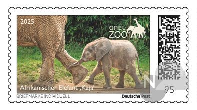Taunus (bs) – Anfang vergangener Woche war das Elefantenkalb „Kaja“ im Opel-Zoo 100 Tage alt. Von Anfang an begeisterte das lebhafte Jungtier die Zoobesucher. Nun gibt es „Kaja“ auch auf einer 95 ct – Sonderbriefmarke; eine passende Postkartenserie mit vier verschiedenen Motiven wurde ebenfalls aufgelegt.