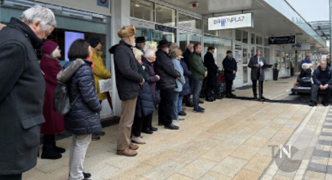 Zahlreiche Schwalbacherinnen und Schwalbacher kamen am Sonntag zur Gedenkstunde anlässlich des 9. Novembers in die Passage des Limes-Einkaufszentrums. Foto: R. Hülsemann