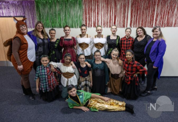 Zum Abschluss versammelten sich alle aktiven Tänzerinnen und Tänzer sowie die Betreuerinnen und Betreuer auf der Bühne und beendeten den Abend gemeinsam.