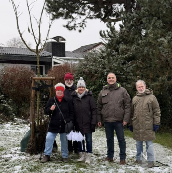 Schneebruch- und Rutschgefahr machten der Schwalbacher SPD am Samstag einen Strich durch die Rechnung. Der traditionelle Neujahrsspaziergang zum „Fuchstanz“ musste kurzfristig abgesagt werden. Einige Unverdrossene entschieden sich stattdessen für einem gemütlichen Spaziergang innerhalb der Schwalbacher Gemarkung. Dabei stattete die Gruppe der Hopfenbuche, die die Ortsvorsitzende Nancy Faeser (Mitte) im Oktober im Europapark gepflanzt hatte, einen frostigen Besuch ab. Der Neujahrsspaziergang soll jedoch nachgeholt werden. Die SPD will den Termin dafür demnächst bekanntgeben.Foto: SPD