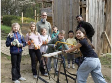Schwalbach (sz). 35 Kinder im Alter von sechs bis zwölf Jahren haben an den Osterferienspielen auf dem „Schiffspielplatz“ teilgenommen. Neben verschiedenen Sport- und Kreativangeboten stand auch in diesem Jahr der Bau von Holzhütten im Mittelpunkt. Unter Anleitung von Sozialarbeiter Kai Kreuzinger sägten und hämmerten die Kinder und setzten eigene Ideen um.