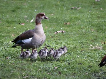 Die einen denken „Ach, wie süß“, die anderen mit Schrecken an den Sommer, wenn auch diese acht Küken erwachsene Nilgänse sein werden. Denn dann werden die lieben Kleinen vielleicht von der Eichendorff-Anlage ein paar hundert Meter zum Taunusbad fliegen und nachts in den Becken herumschwimmen und morgens die ganze Anlage mit bis zu zwei Kilo Kot pro Tier und Tag verschmutzen. Im vergangenen Jahr litt die Wasserqualität dadurch so stark, dass das Bad im Hochsommer lange geschlossen war. Bleibt also zu hoffen, dass der flauschige Nachwuchs eine andere Flugrichtung einschlägt. MS/Foto: te