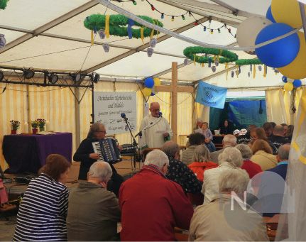 Weiterhin erzählten sie, dass man an vielen Stellen erkennen könne, dass der Mensch auch Fest und Feier in seinem Leben benötige. Ein gewisser Ausgleich zum Alltag, sei wichtig, um das Leben mit allen seinen Höhen, Tiefen und Verlusten zu bewältigen. Kirchen hätten das bereits gut geschafft, mit vielen feierlichen Tagen wie Ostern und Weihnachten, daraus könnten viele Menschen Motivation für das Leben, den Glauben und den Alltag ziehen, erläuterte Christof Reusch. So kann man Gott also auch an Festen und Feierlichkeiten begegnen, überall dort, wo Menschen gut miteinander umgehen. Die wichtige Aufgabe einer Kerb ist es also, den Alltag zu unterbrechen und an die schöne Seite des Lebens zu erinnern. Mit diesen Worten im Kopf entließen Christof Reusch und Herbert Lüdtke die Zuhörer in die weiteren Festtage, glücklich nach einem solch entspannten und dennoch bedeutungsvollen Gottesdienst.