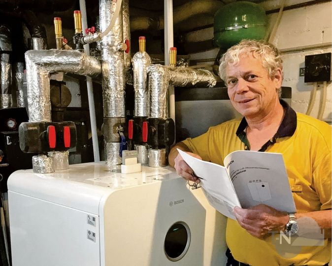Joachim Heidebrecht an seiner WärmepumpeFoto: IG Nachhaltigkeit