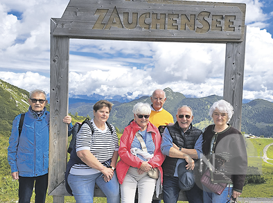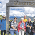 Einige Teilnehmer der Senioren-Reise machen Pause auf dem Gamskogel mit Blick auf den ZauchenseeFoto: privat