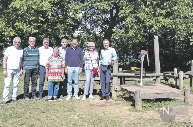 Steinbach (stw). Die beliebte Wasserspielanlage, welche bislang zwischen den beiden städtischen Kindertagesstätten „Am Weiher“ und „Wiesenstrolche“ in der Wiesenau ihren Standort hatte, wurde auf Veranlassung des Magistrats der Stadt abgebaut und am Volker-Becher-Spielplatz wieder aufgebaut. Vor ein paar Wochen wurde der Wasseranschluss zum Betrieb des Spielgerätes verlegt und die Anlage in Betrieb genommen. Die Mitglieder des Magistrats haben sich am Ort ein Bild gemacht und den Kindern, die das Gerät eifrig und voller Freude nutzen, viel Spaß gewünscht. Bei der Besichtigung wurde auch deutlich, dass durch das Spielen mit dem Wasser rund um das Gerät eine Matschlandschaft entsteht. Die Stadtverwaltung wird dies beobachten und gegebenenfalls nacharbeiten, damit der Spielspaß auch für die Eltern ungetrübt ist.