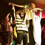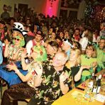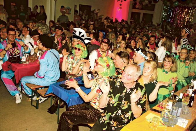 Mit einer längeren Schunkel- und Mitsing-Runde der Kirchen-Combo „Maine Bäänd“ startete das Narrenvolk in den zweiten Programmblock. Auf „Wanderurlaub“ mit Bergsteigen wollten sich Thorsten Moser und Sohn Lukas begeben. Beide wollten eigentlich den „Killemanscharo“ besteigen, entschieden sich aber dann doch – unter verständnisvollem Gejohle – wegen möglicher Sauerstoffprobleme für den nahen Fuchstanz. In Palim-Palim-Manier spielten die „Knasti“ Marius Moser und Alexander Siefert heitere Sketche, wollten gar nicht ausbrechen. Als „Cowboys und Cowgirls“ fegten die „Wäschbach“-Tänzer über die schmale Bühne, gefolgt von den „Beichtstuhl-Rockern“, die unter viel Gelächter Kindheitshelden wie Pippi Langstrumpf, die Biene Maja oder die sieben Zwerge auch mit Hebefiguren darstellten.