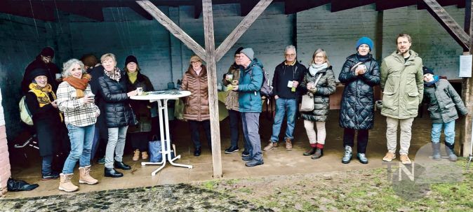 Erfolg hatten die Grünen mit ihrer Suche nach „Klimahelden“. Hier übergab die Initiatorin der Aktion, Dr. Dagmar Baldering-Schellenberg, Kandidat für Bündnis 90/Die Grünen, zahlreiche Urkunden zu folgenden Energiesparmaßnahmen: sieben für E-Autos, fünf für Photovoltaik, je vier für Fahrrad, ÖPNV, Wärmepumpen, Solarthermik sowie insektenfreundliches und biodiversitäteres Gärtnern. Zwei Urkunden gab es für Warmwassergewinnung und eine für dreifach verglaste Fenster. Die Aktion „Klimahelden“ soll im Sommer fortgesetzt werden, denn Eis, Schnee und Kälte waren bei der „Suche nach den Sonnenblumen“, die im Ort mit Kreide aufgemalt waren, sehr hinderlich. Organisiert wurde das „KKK-Treffen“ im Park von den Grünen-Kandidaten Jan Buchta, Dr. Angela Wolff und Baldering-Schellenberg. Außer Kaffee und Kuchen gab es eine warme Suppe – und das alles ohne Plastikgeschirr, weil die Besucher passendes Geschirr mitgebracht hatten.