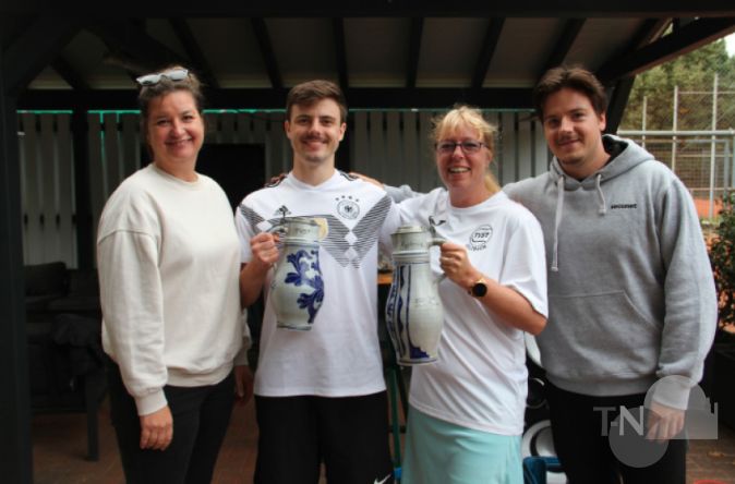 Sulzbach (gs) – Seit einem Jahr fährt der Tennisverein Sulzbach (TVST) bei vereinsinternen Wettbewerben getränkemäßig zweigleisig. Denn was seit 34 Jahren für Bierliebhaber der „Kölsch-Cup“ ist, ist für Apfelweingenießer der neue „Äppler-Cup“, der im Vorjahr seine Premiere feierte und jetzt die zweite Auflage erlebte. Beim „Kölsch-Cup“ wird das gezapfte Altbier stilgerecht aus 0,2-Liter-Gläschen getrunken. Diese Gewinner bekommen als Pokale die Kölner Witzfiguren „Tünnes und Schäl“. Beim „Äppler-Cup“ wird der Ebbelwoi in großen gerippten 0,5-Liter-Gläsern ausgeschenkt. Als Siegestrophäen gibt es traditionelle Bembel mit gravierten Zinndeckeln – gefüllt mit zwei Litern für die Dame und mit drei Litern für den Herrn. Da auch der Apfelwein Alkohol enthält, war die Teilnahme erst ab 18 Jahren erlaubt.