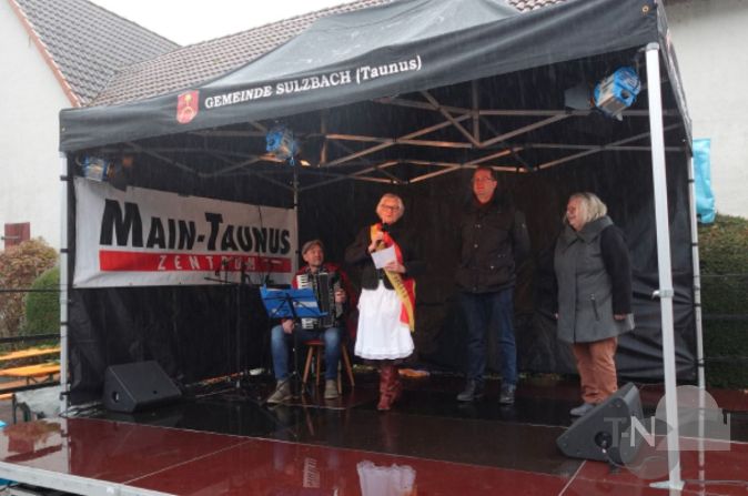 „Der erste Schnee kam zu früh“, merkte Bürgermeister Bociek – bezogen auf das unpassende Wetter – in seiner Begrüßungsrede an. Er wünschte sich, dass sich alle nach Besinnlichkeit sehnen, Frieden wünschen und dass die Welt zur Ruhe kommt. Sein besonderer Dank galt dem Deutschen Roten Kreuz Sulzbach und der Freiwilligen Feuerwehr Sulzbach, die sich um die sichere Durchführung des Weihnachtsmarktes kümmerten. Aber selbstverständlich bedankte er sich auch für das Engagement der Standbetreiber, die den Markt überhaupt erst ermöglichten. Und er begrüßte Landrat Michael Cyriax, der den Weihnachtsmarkt besuchte. Die Vorsitzende des Vereinsrings legte den Fokus in ihrer Begrüßung auf die Standbetreiber des 46. Weihnachtsmarktes. Schiller sprach vor allem den Stand der SPD Sulzbach an, die seit Langem wieder auf dem Markt vertreten war. Das Besondere dabei war, dass die Bastelfrauen der SPD ursprünglich den Weihnachtsmarkt initiiert hatten – somit war der Ursprung des Weihnachtsmarktes wieder mit einem Stand vertreten. Aber auch Käsfraa Marianne I. wünschte den Gästen gesegnete Weihnachten und kündigte ihren anstehenden Käsfraa-Ruhestand an. Zum Abschluss der Begrüßung spielte Thomas Kempf vom Akkordeon Club Sulzbach.