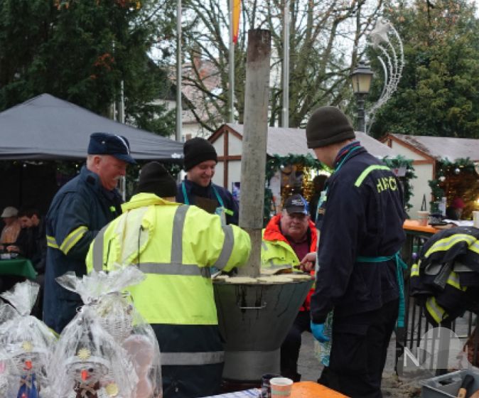 Wer über den Platz an der Linde und den Parkplatz am Großen Dalles schlenderte, konnte problemlos seinen Durst und Hunger stillen. Hingucker waren allemal die tschechischen Produkte – von Schinken über Süßigkeiten –, die der Freundeskreis Jablonec an der Iser von seinen Freunden erhielt, der frisch zubereitete Fisch des Angelsportvereins und der Angelsport-Gemeinschaft, der selbst gemachte Whiskylikör des Ortsverbandes der SPD, die Riesengebirgspfannkuchen der Feuerwehr Jablonec oder das Glücksrad des Fördervereins der Katholischen Kindertagesstätte und -krippe. Aber auch Klassiker wurden angeboten, etwa Bratwürstchen von der Bürgerinitiative „Bürger fürs Bürgerhaus“ oder Crêpes von der Evangelischen Kindertagesstätte. Nicht zu vergessen den Glühwein, den es an vielen Ständen im Ausschank gab.