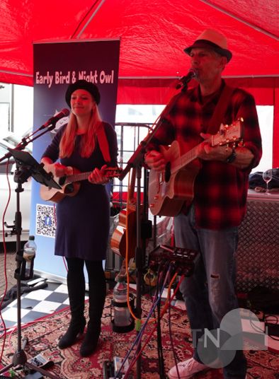 Viele ließen sich die Möglichkeit nicht entgehen und schauten am Platz an der Linde vorbei. Bereits in den ersten Stunden wurden 50 Gläser der Begrüßungsgetränke (Crémant oder alkoholfreier Sekt) ausgeschenkt. Für eine entspannte musikalische Begleitung sorgte das Duo „Early Bird & Night Owl“, bestehend aus Ann Kristin Schalich (Ukulele und Gesang) und Günter Steppich (Gitarre und Gesang). Zudem gab es für Weinkenner ein kleines Quiz, bei dem etwa nach der Rebsorte gefragt wurde, die für chilenischen Wein steht. Lediglich drei solcher Fragen, die für Genießer des Tropfens leicht zu lösen waren, mussten auf einem Zettel beantwortet werden. Der erste Platz erhält als Gewinn eine Magnum-Flasche Crémant.