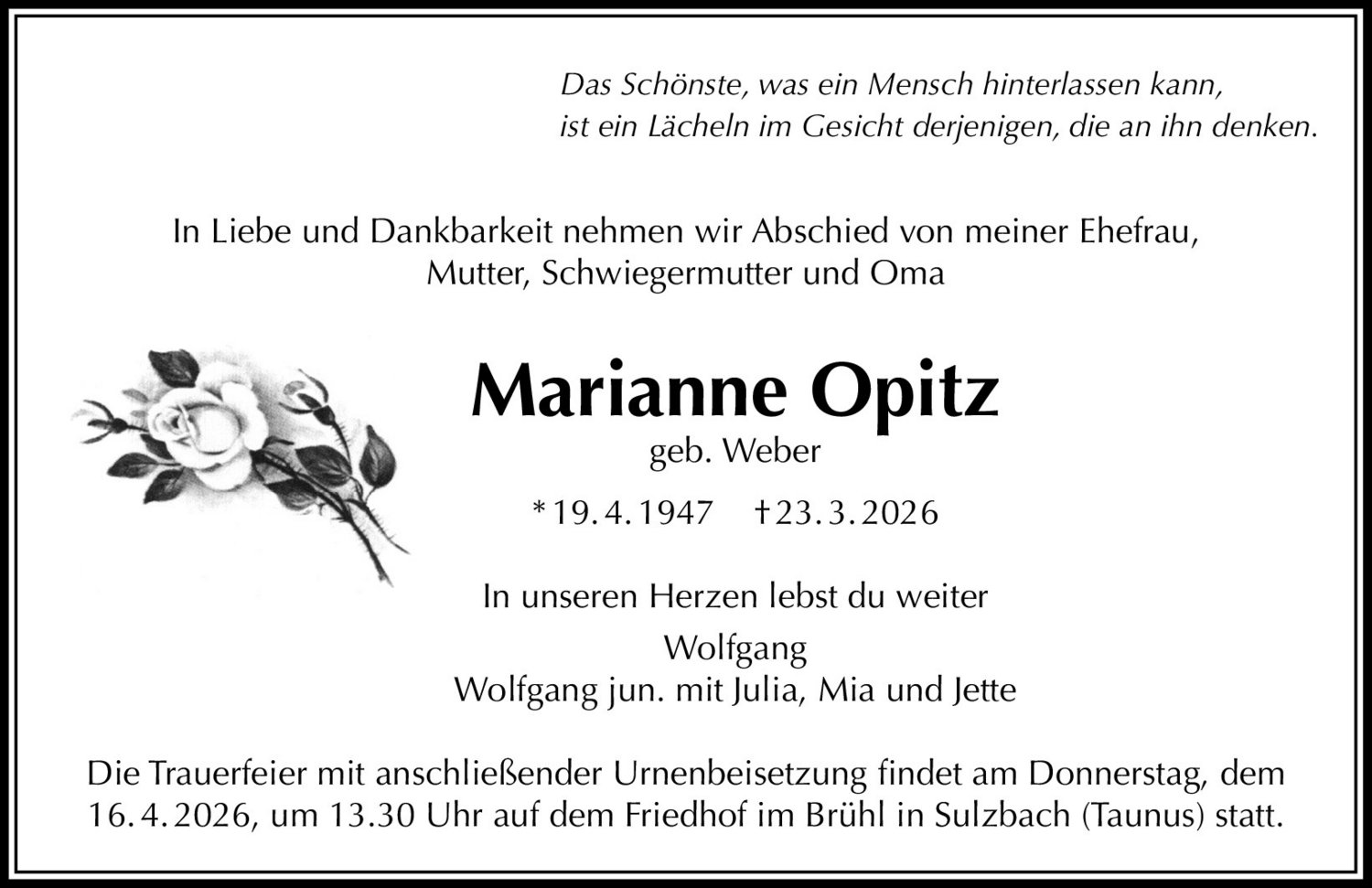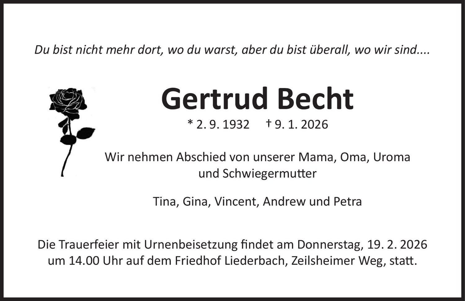 Der Tod eines geliebten Menschen verändert alles. In unserem Trauerportal finden Sie Raum für Abschied, Erinnerung und würdevolles Gedenken.